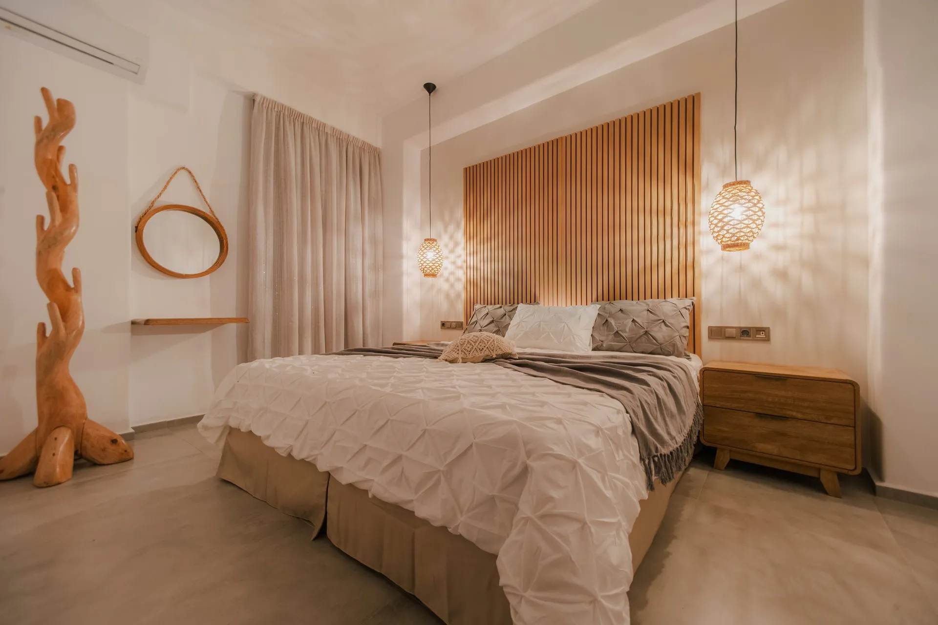 Outdoors, guests can enjoy a private pool with generous lounge space and daybeds, perfect for slow mornings and sun-filled afternoons. The top-floor terrace offers an additional highlight – a private hot tub, providing a peaceful spot to unwind and take in the island ambiance.