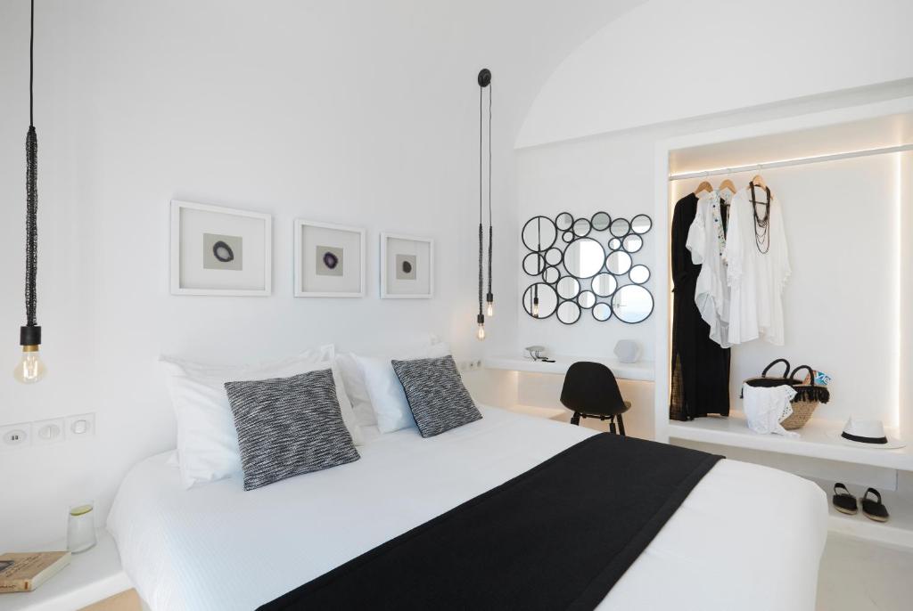 The private sun terrace is perfect for sunsets and alfresco dining. A private infinity pool completes this idyllic Santorini retreat.
